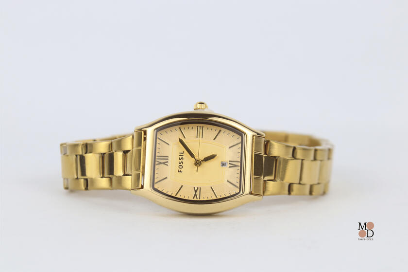 Mood Timepieces | Fossil Oval Gold Watch White Time Face F003