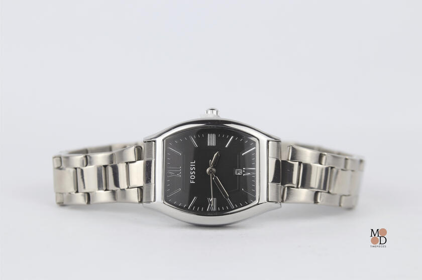 Mood Timepieces | Fossil Oval Silver Watch Black Time Face F004