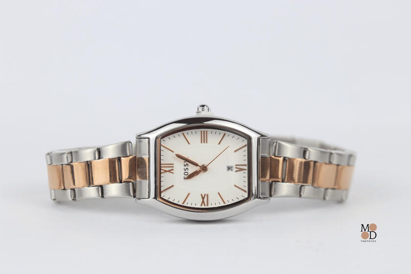 Timepieces | Fossil Oval Duo Tone Watch Rose Gold And Silver F002